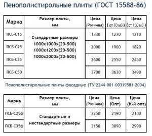 Сегодня в магазинах можно встретить пенопласт трёх маркировок: